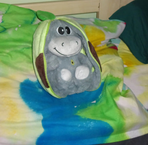 Normalmente mide alrededor de 30 cm, tamaño ideal para abrazar y llevar a la cama o al sofá.